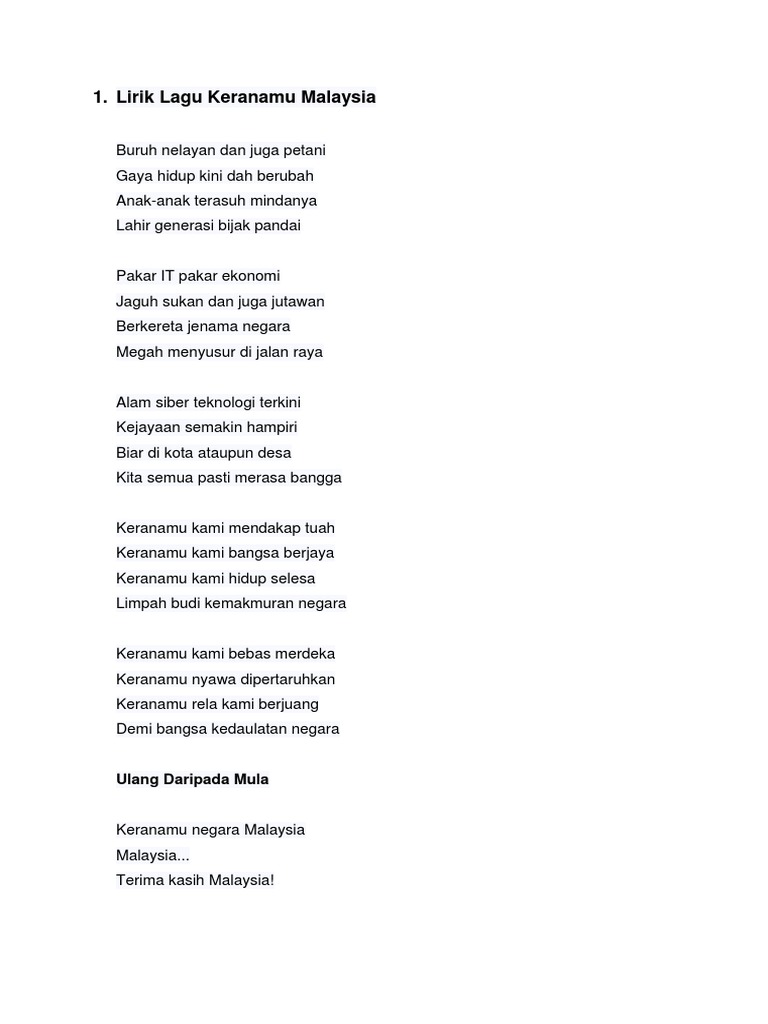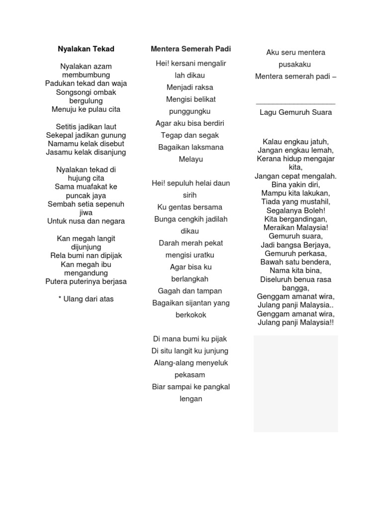 Lirik Lagu Patriotik Malaysia Pdf