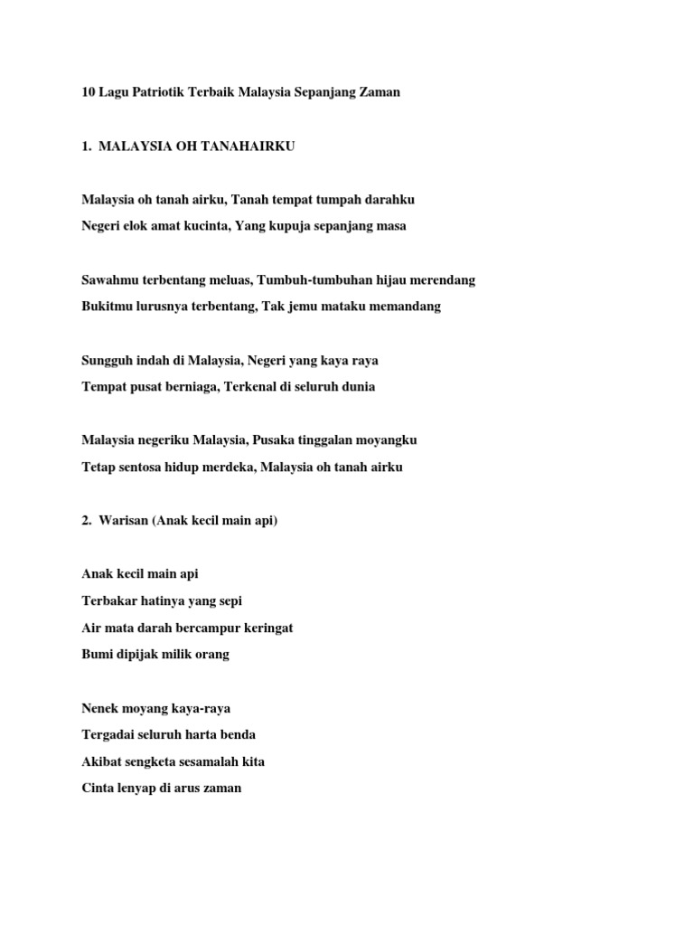 10 Lagu Patriotik Terbaik Malaysia 1 Pdf