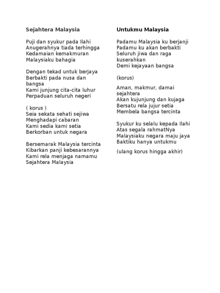 Lirik Lagu Kebangsaan Malaysia Fundacionfaroccr